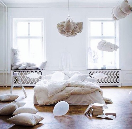 Uma ideia para quem gosta de estar nas núvens e não sabe onde arrumar os edredons extras.