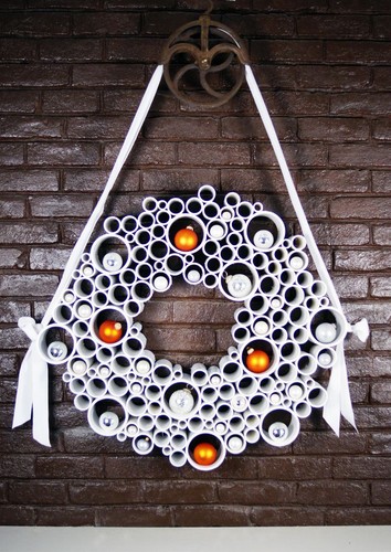 1. Corte os circulos com 5 cm de profundidade. 2. Fixe-os com cola tudo, pressione bem para que as superficies adiram. 3.Fixe as bolas com cola tudo. 4. Aplique uma fita em cetim da cor que melhor se adequa à sua decoração de natal.