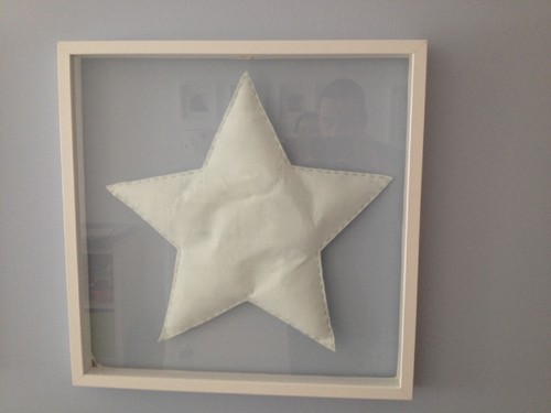 1. Retire o passe-partout do quadro. 2. Fixe na parte superior interior um pequeno camarão, branco, preferencialmente. 3. Coloque um fio transparente (fio de pesca) no topo da estrela e pendure no camarão. 4. Se for uma almofada e estiver muito cheia procure retirar um pouco do interior.